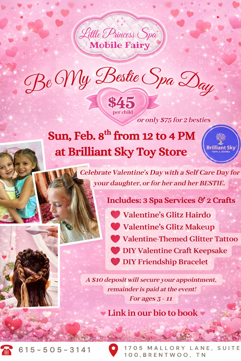Celebrate love, friendship, and confidence this Valentine’s season with Little Princess Spa® Mobile Fairy at our Be My Bestie Spa Day — a magical self-care event designed especially for little girls and their besties.